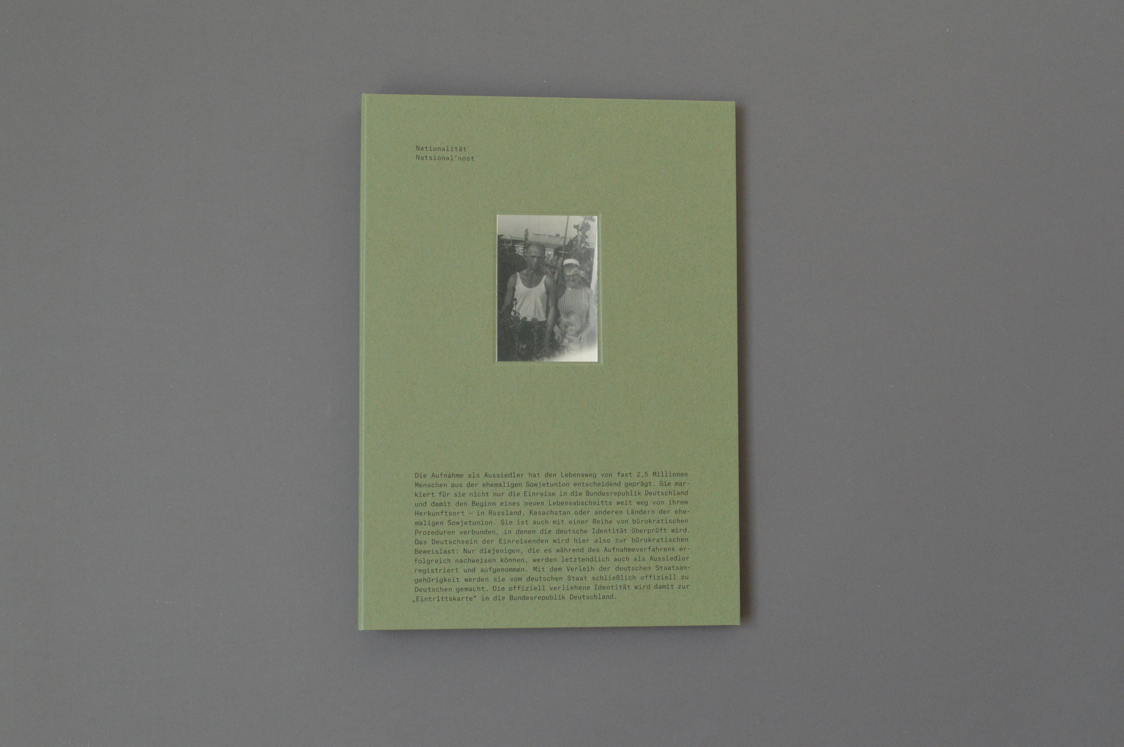 In Deutschland leben aktuell etwa 2,5 Millionen Menschen mit einem russlanddeutschen Migrationshintergrund. Die Aufnahme als (Spät-)Aussiedler:in ist mit vielen bürokratischen Hürden verbunden und nur diejenigen, die das Deutschsein erfolgreich nachweisen können, werden aufgenommen. Doch wie wird darüber entschieden, was als deutsche Identität gilt und was nicht? Um dieser Frage auf den Grund zu gehen, dokumentiere ich die bürokratische Beweislast meiner Großeltern. Eine Rekonstruktion einer Lebensgeschichte.